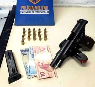 Em André Carloni, após informações do setor de inteligência, militares detiveram dois homens. Ele estava de posse de uma pistola calibre 380, 16 munições e 2 carregadores.