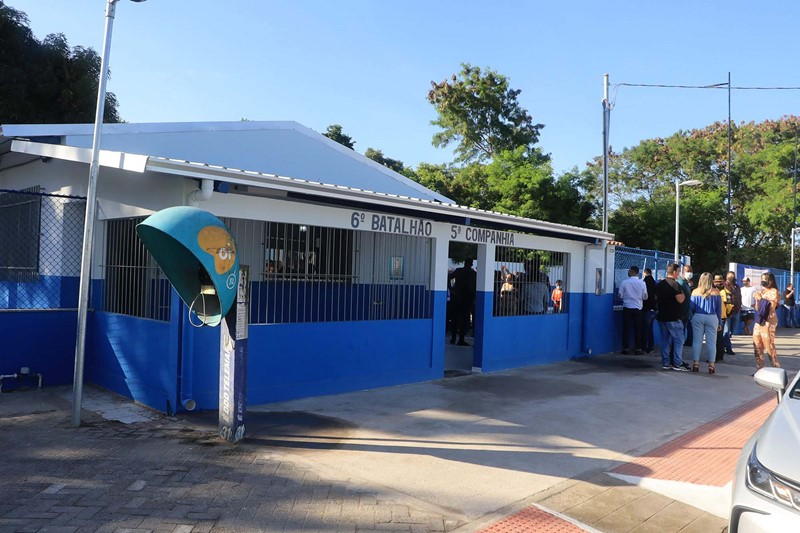 Na primeira agenda do dia, Casagrande fez a entrega da unidade da PMES, que passou por obras de manutenção preventiva e corretiva. Foram realizados serviços de substituição de pisos, esquadrias e telhas termo acústicas danificadas, manutenção das instalações hidrossanitárias, revisão da parte elétrica, reparos no muro de alvenaria, além de pintura e reforma nos portões. O valor do investimento foi de R$ 357.596,98.