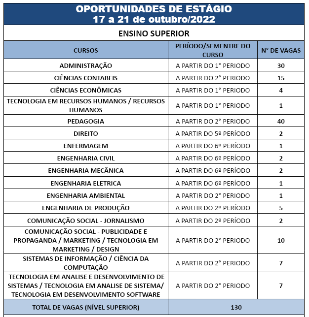 O Centro de Integração Empresa Escola do Espírito Santo (CIEE-ES) está com 171 vagas de estágio abertas, sendo 130 para início imediato em áreas de nível superior e 41 vagas para nível médio/técnico.