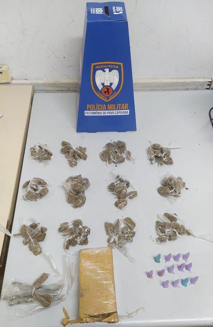 No bairro Carapina Grande, policiais apreenderam um tablete de maconha, 125 buchas de maconha e 13 pinos de cocaína. Aqui, o material ilícito estava escondido no cemitério do bairro e só foi localizado após informações anônimas e a utilização de cães farejadores da Companhia Independente de Operações com Cães (CIOC) e da equipe K9 do 6º Batalhão.