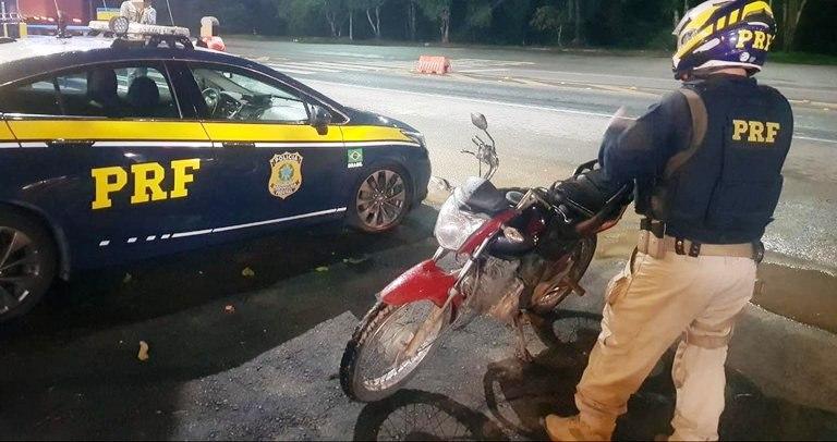 Na noite desta segunda-feira (19), no Km 248 da BR-101, os agentes abordaram uma motocicleta Honda CG FAN 150. Em vistoria, foi constada adulteração na identificação do veículo.